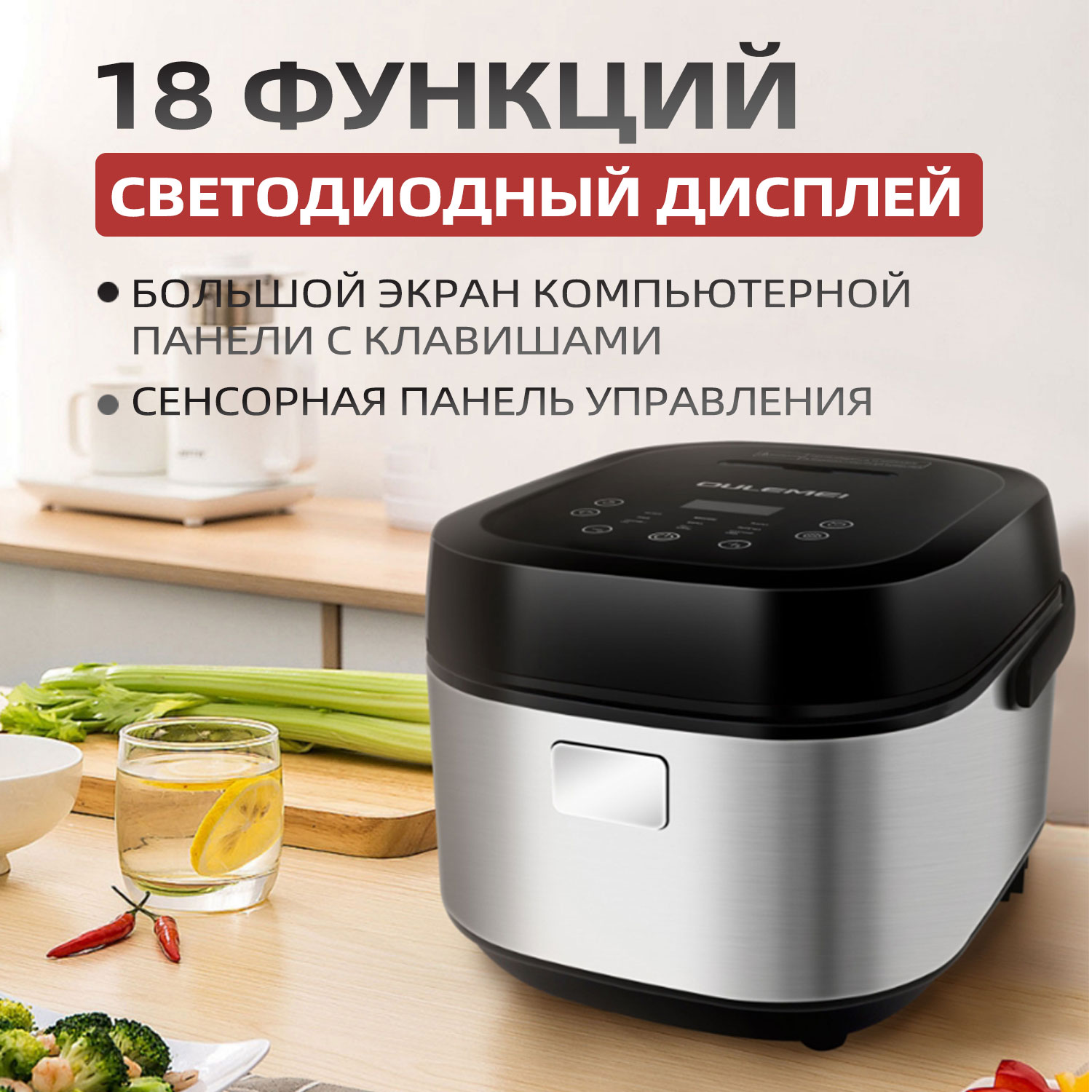 1)18 функций, светодиодный дисплей, стальное стекло, большой экран сенсорной панели;
